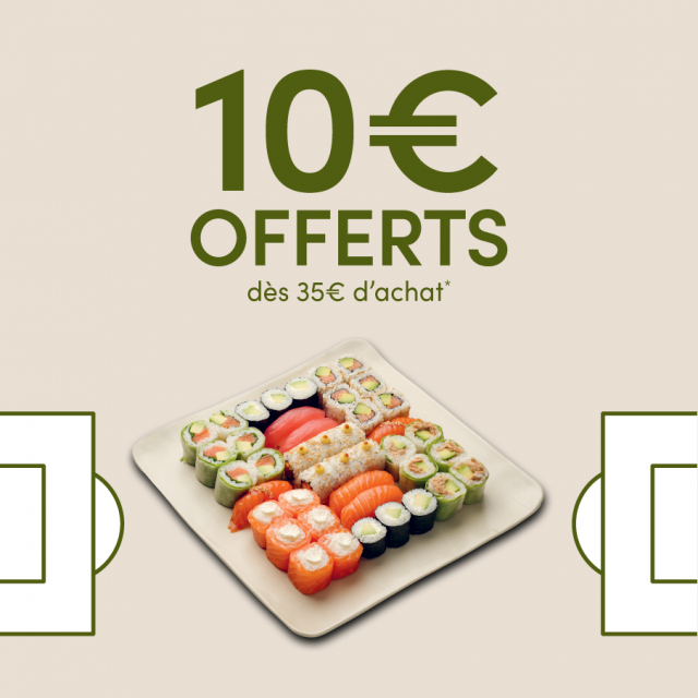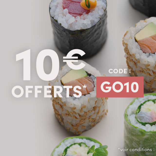 Profitez de 10€ offerts dès 35€ d'achat pour les commandes en vente à emporter avec le code GO10 dans les Sushi Shop participants.